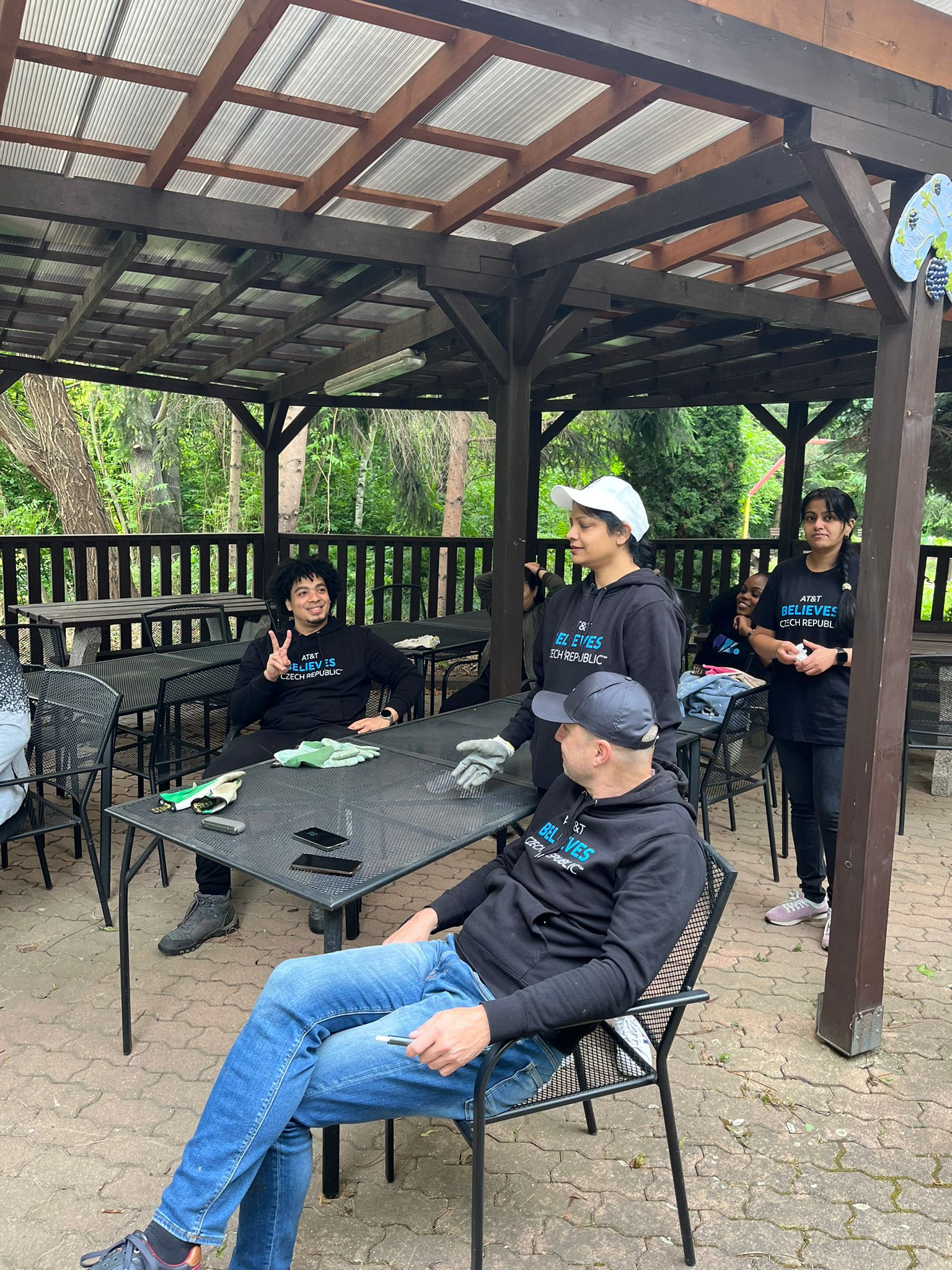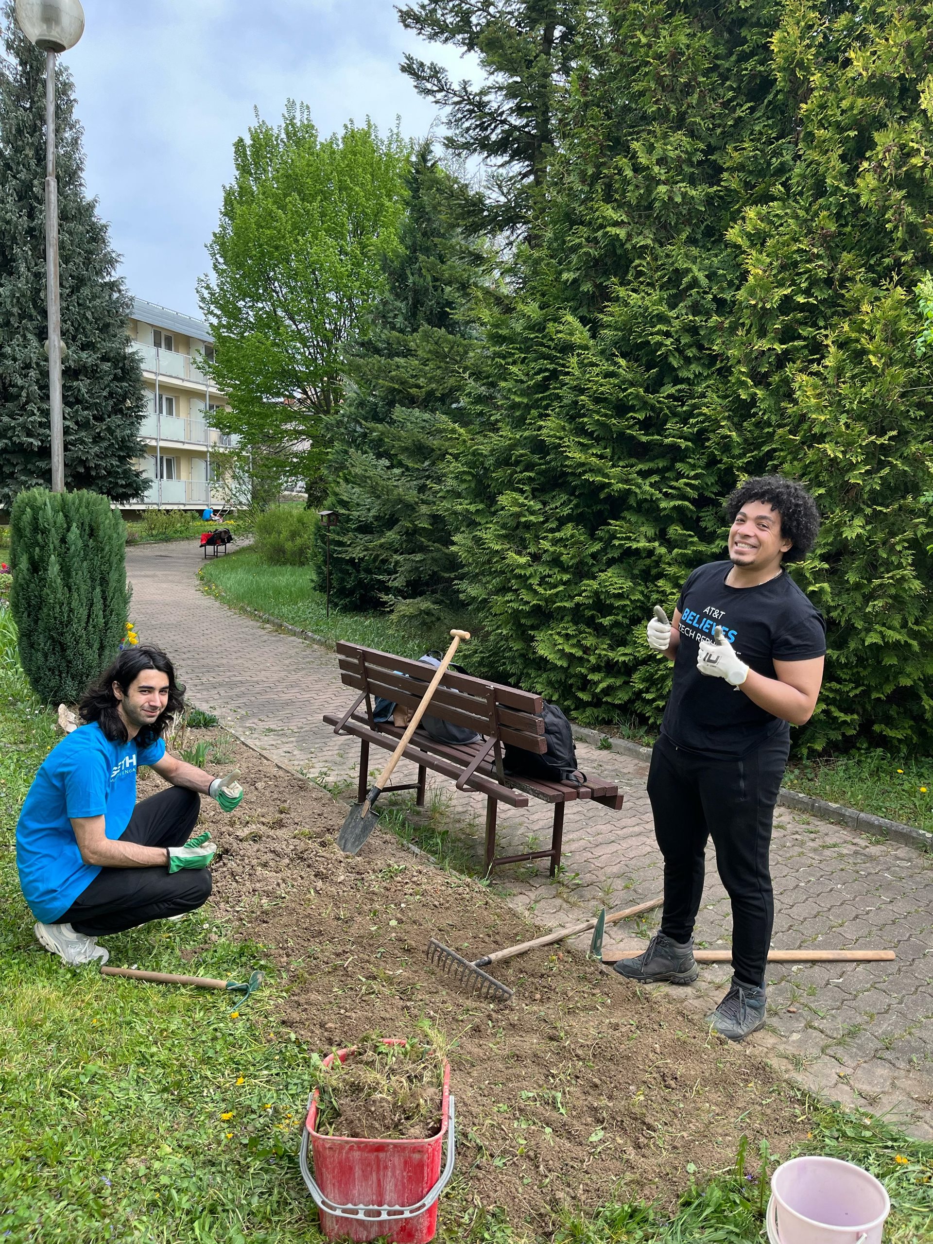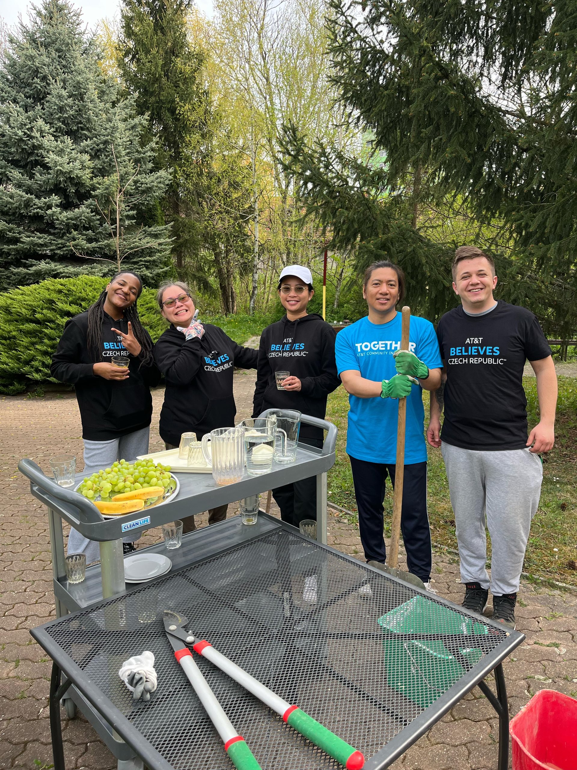 Poděkování patří Dobrovolnickému centru Adra a firmě AT&T. Ve dnech 17. 4. a 29. 5. 2025 pomohli upravit a zvelebit zahradu domova. 2. 6. 2025 navštívili klienty domova s ukázkou canisterapie.