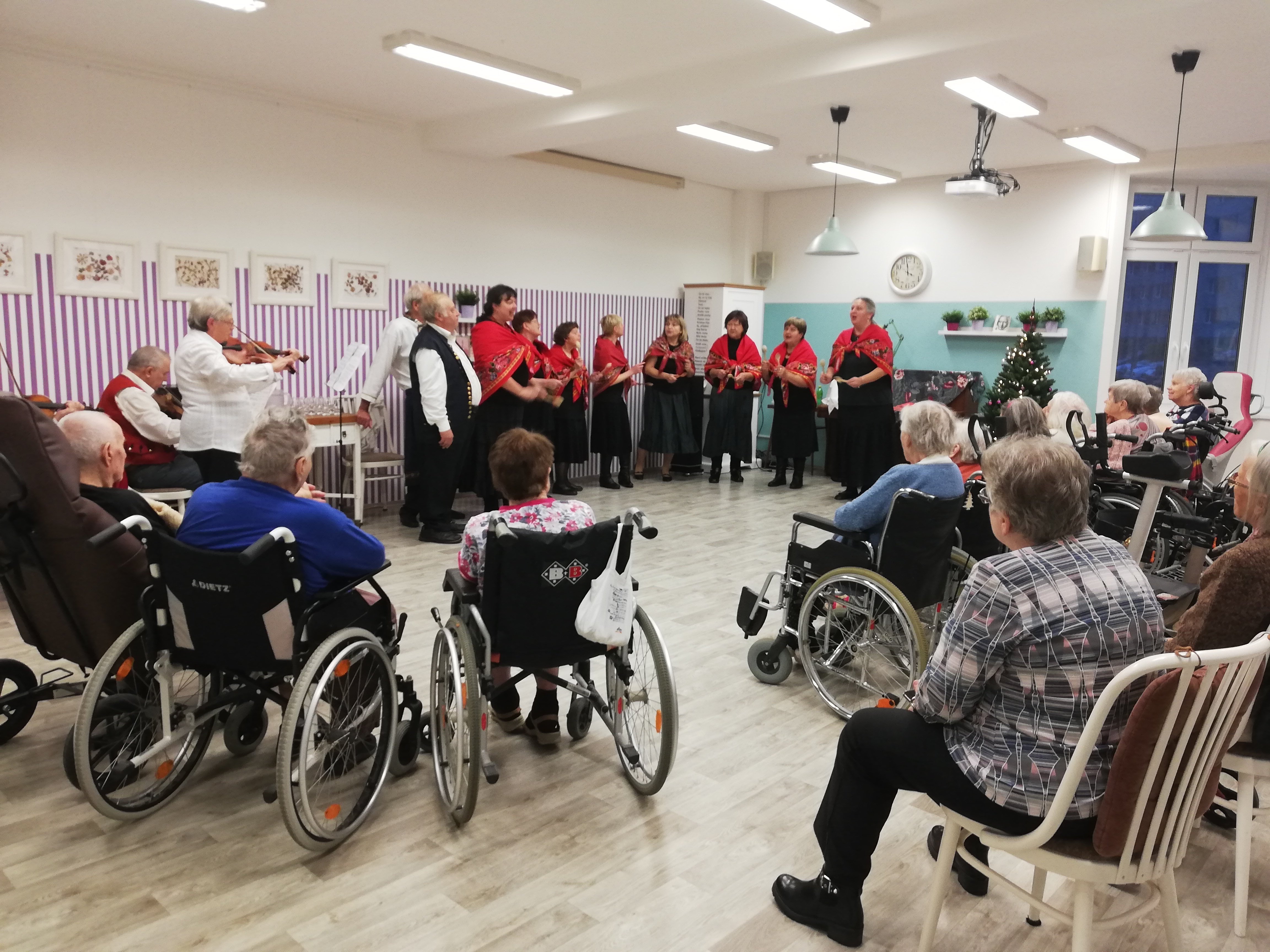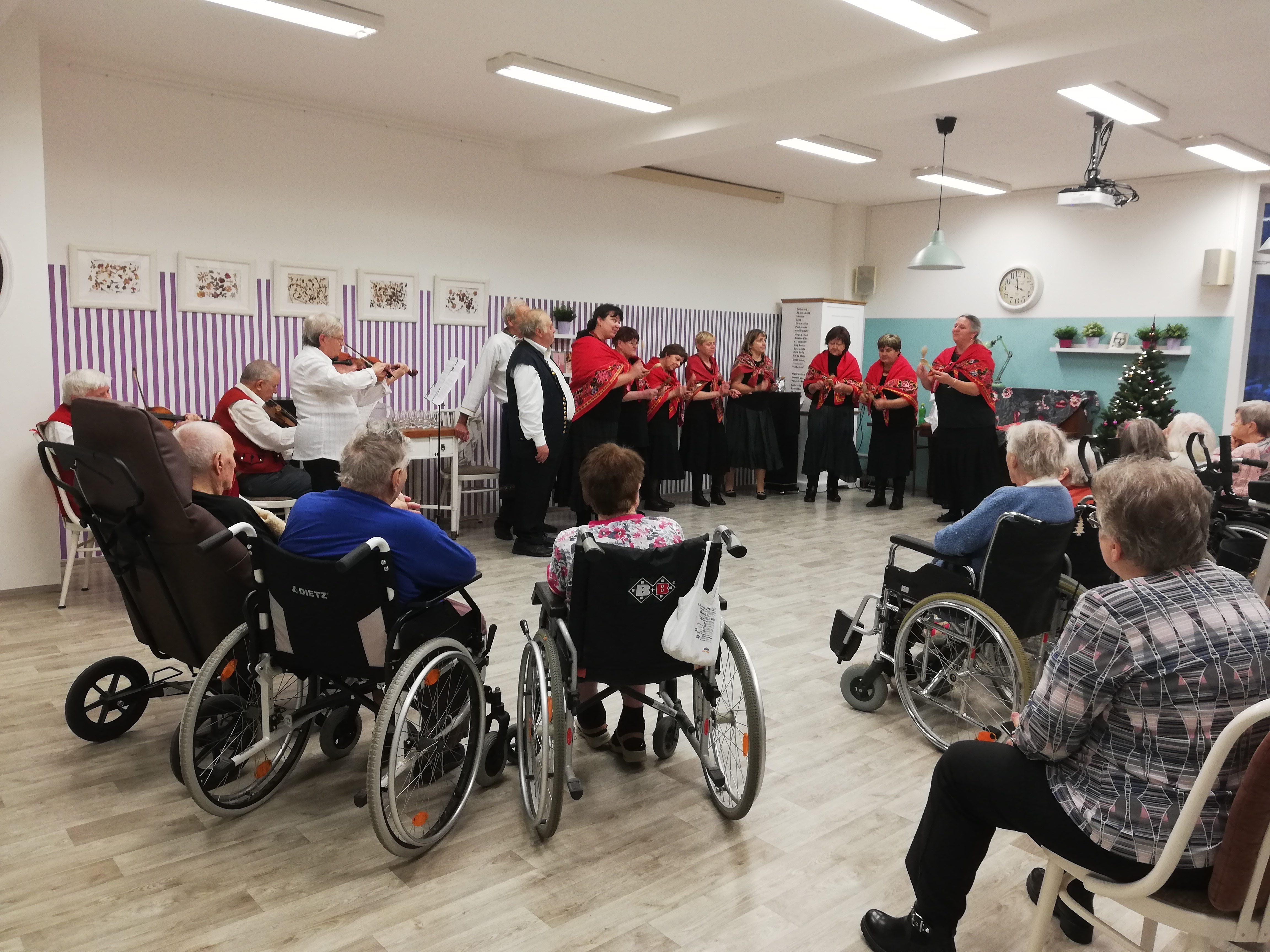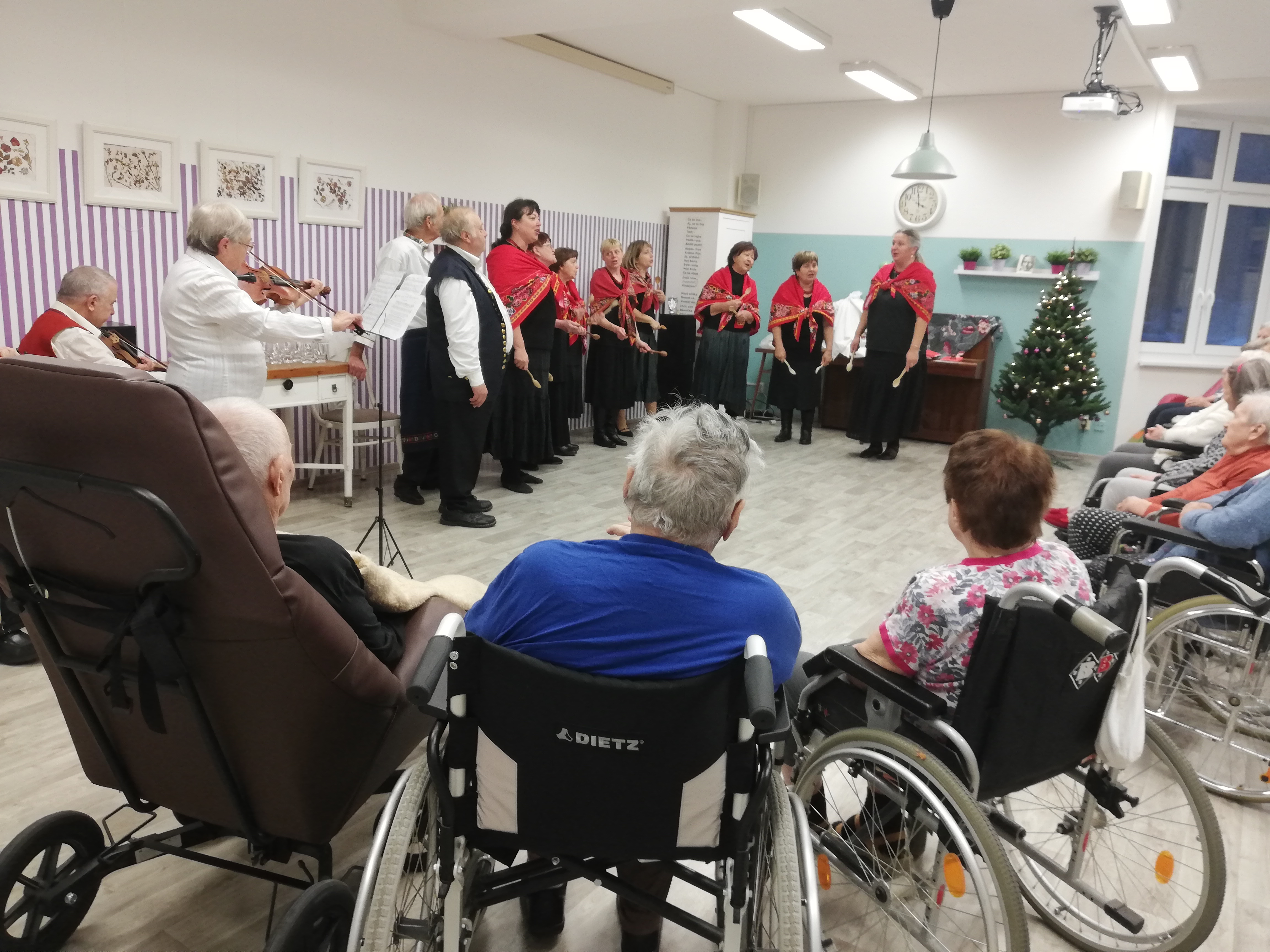 Již podruhé v letošním roce nás přišel potěšit svým vystoupením brněnský Sboreček. Tentokrát se vystoupení neslo v duchu vánočních koled. V druhé půlce vystoupení si společně s klienty jeho členové zazpívali ty nejznámější.