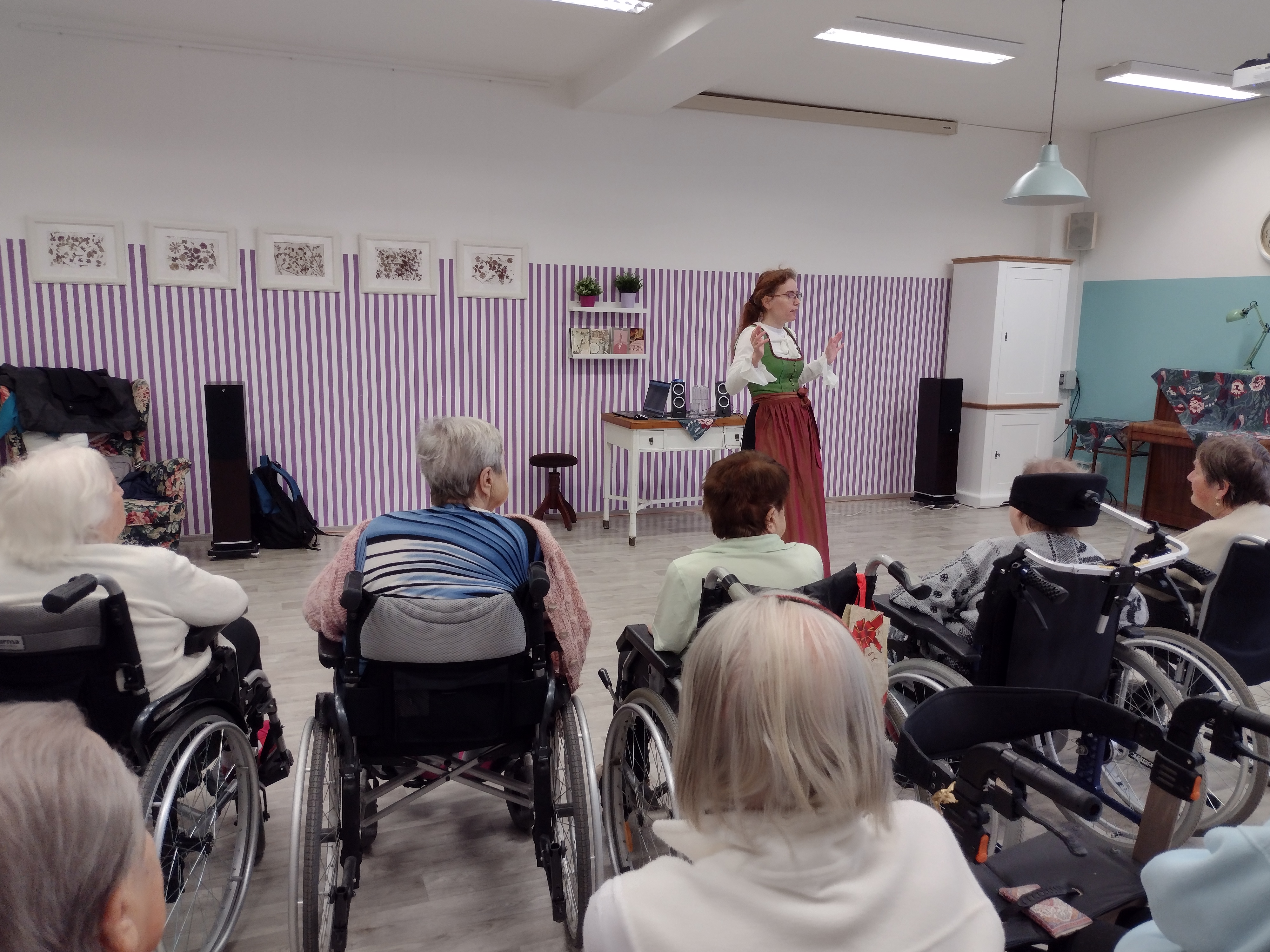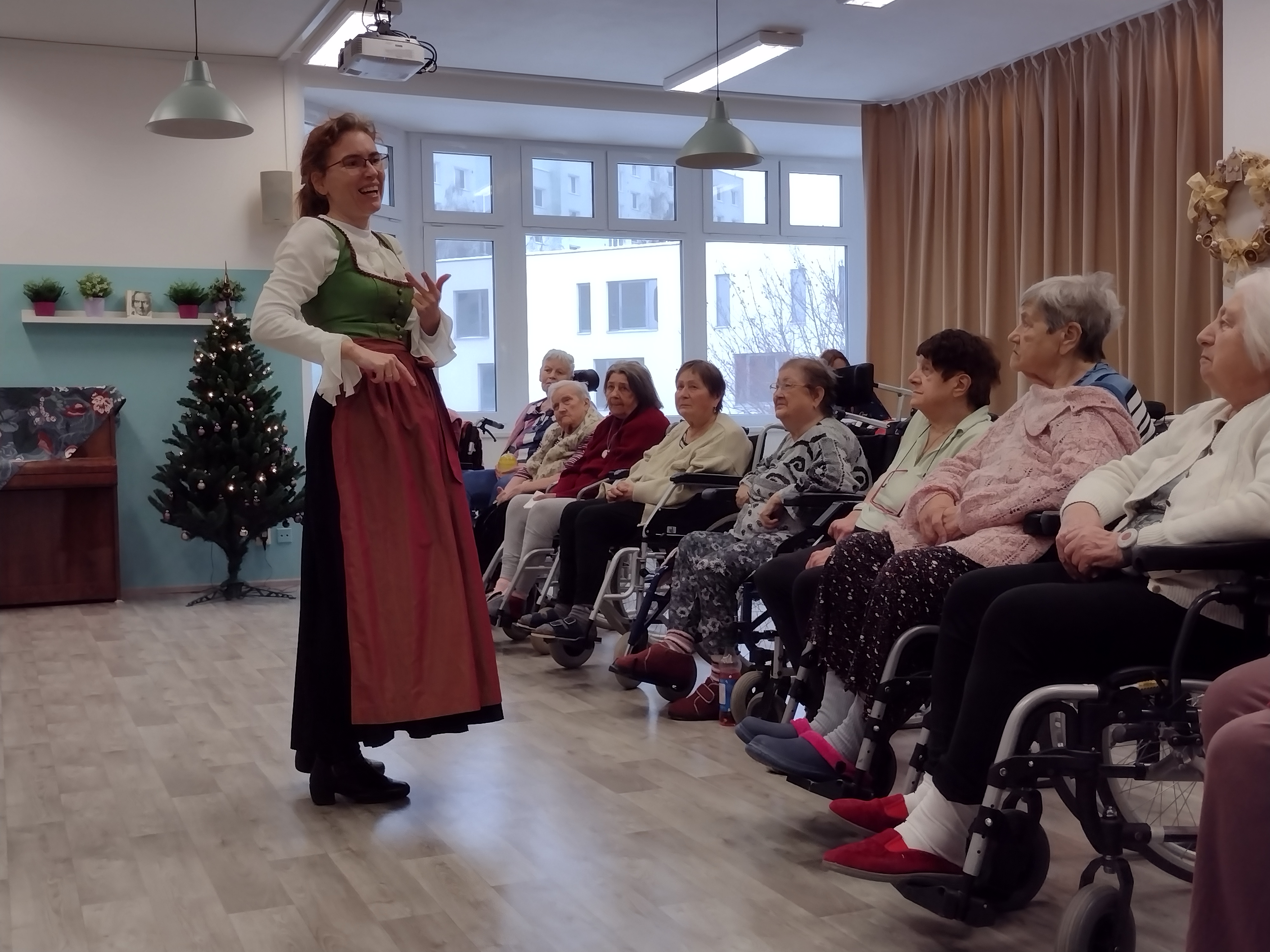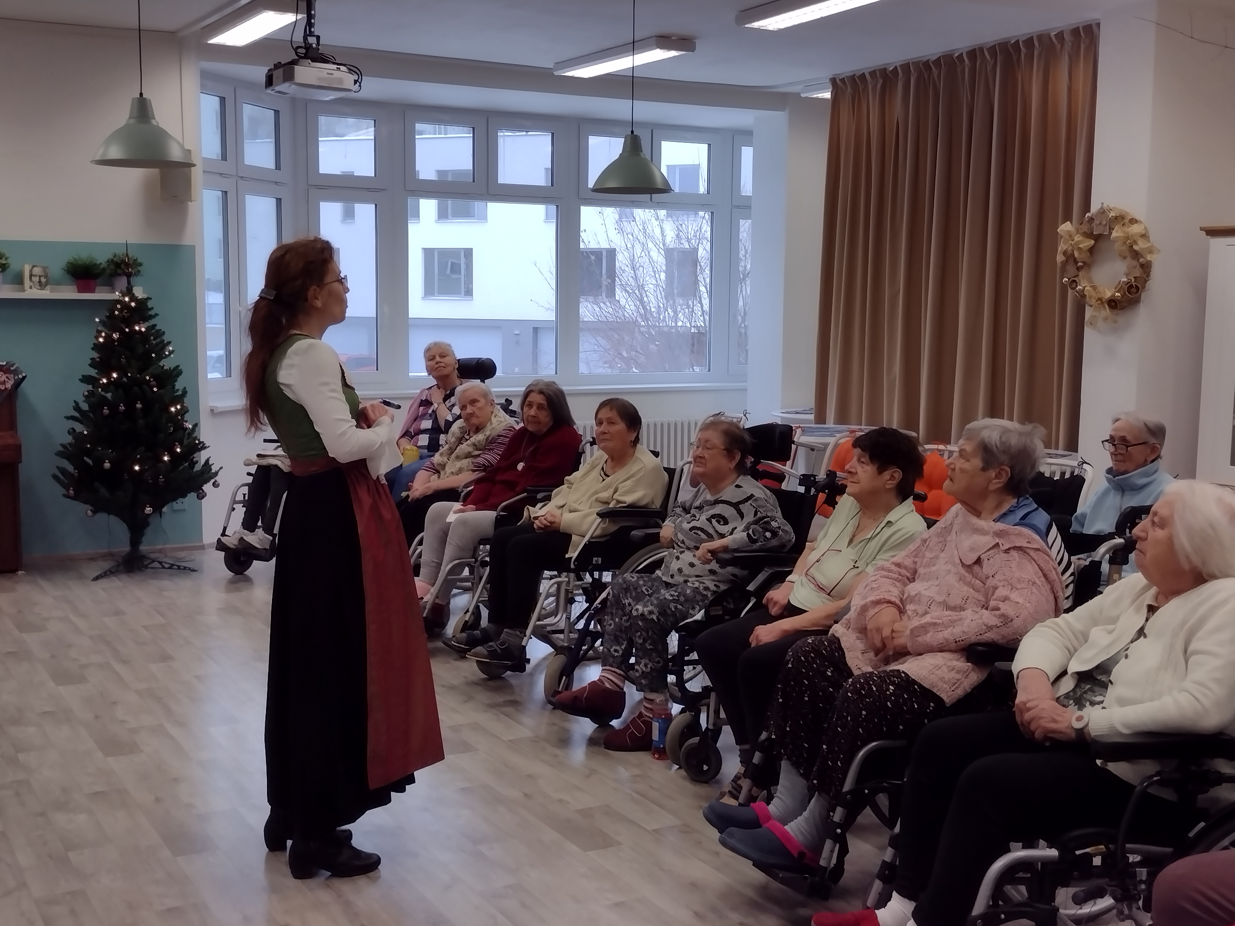 V pondělí 19. 12. 2022 jsme v dopoledních hodinách pořádaly besedu s paní Danou Šimkovou na téma "Koledy". V rámci setkání si naši klienti s paní Šimkovou koledy nejen zazpívali, ale dozvěděli se řadu zajímavostí o historii vzniku, vývoji i současných pojetích vánočních koled.