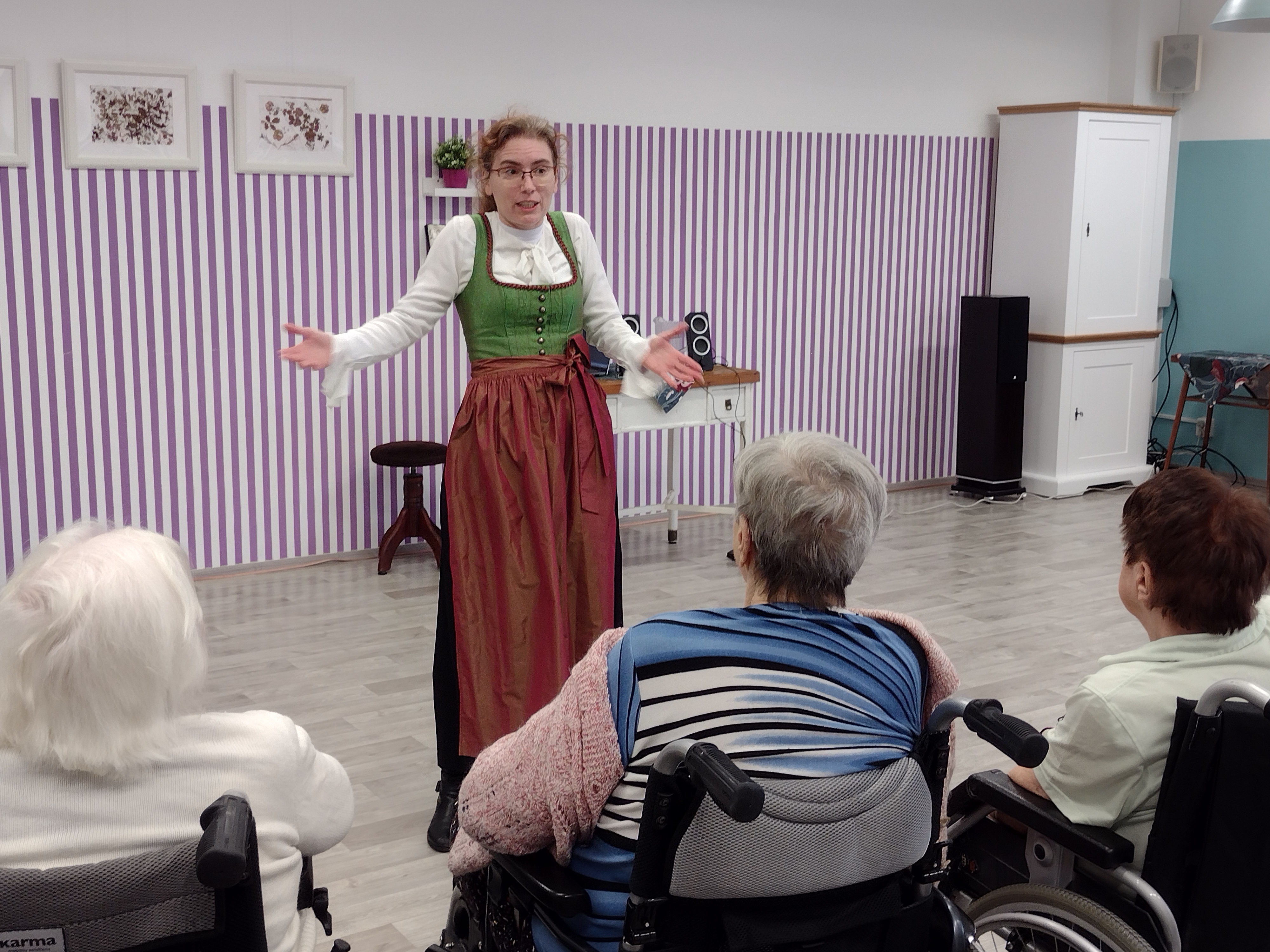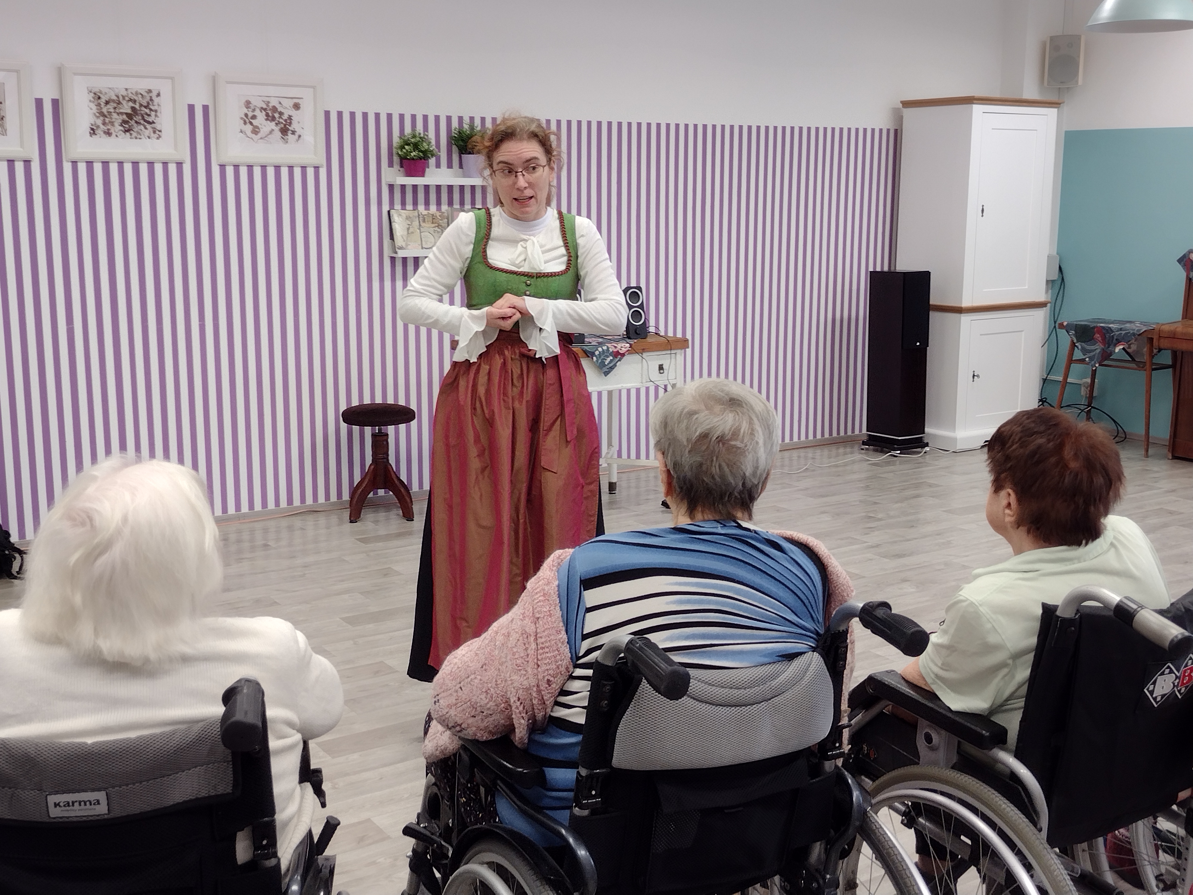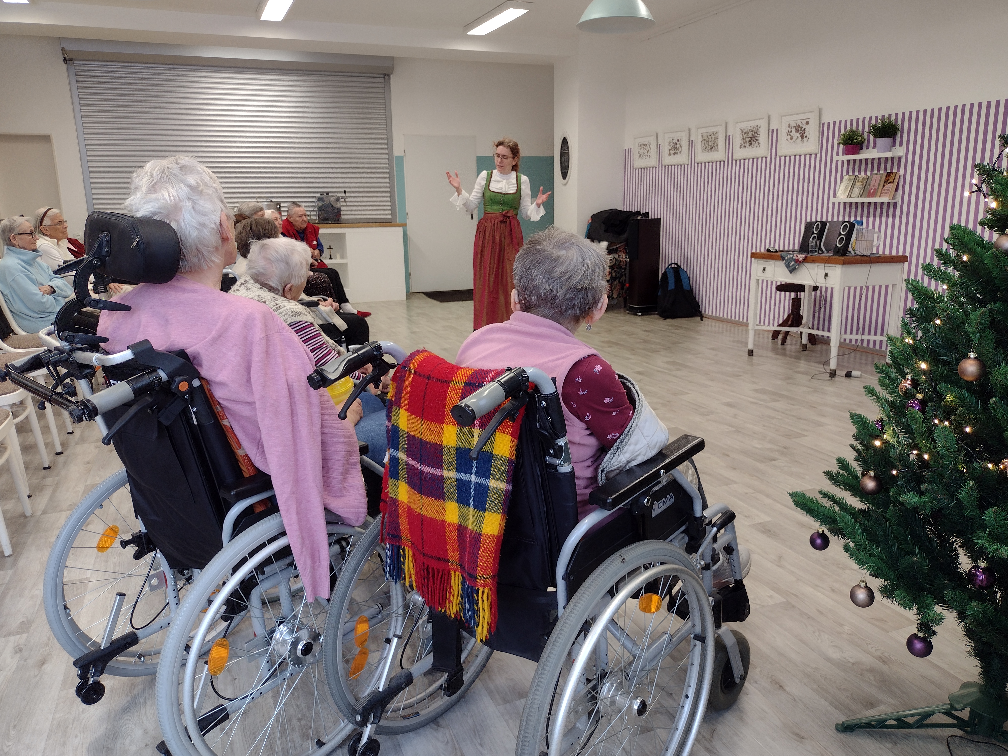 V pondělí 19. 12. 2022 jsme v dopoledních hodinách pořádaly besedu s paní Danou Šimkovou na téma "Koledy". V rámci setkání si naši klienti s paní Šimkovou koledy nejen zazpívali, ale dozvěděli se řadu zajímavostí o historii vzniku, vývoji i současných pojetích vánočních koled.