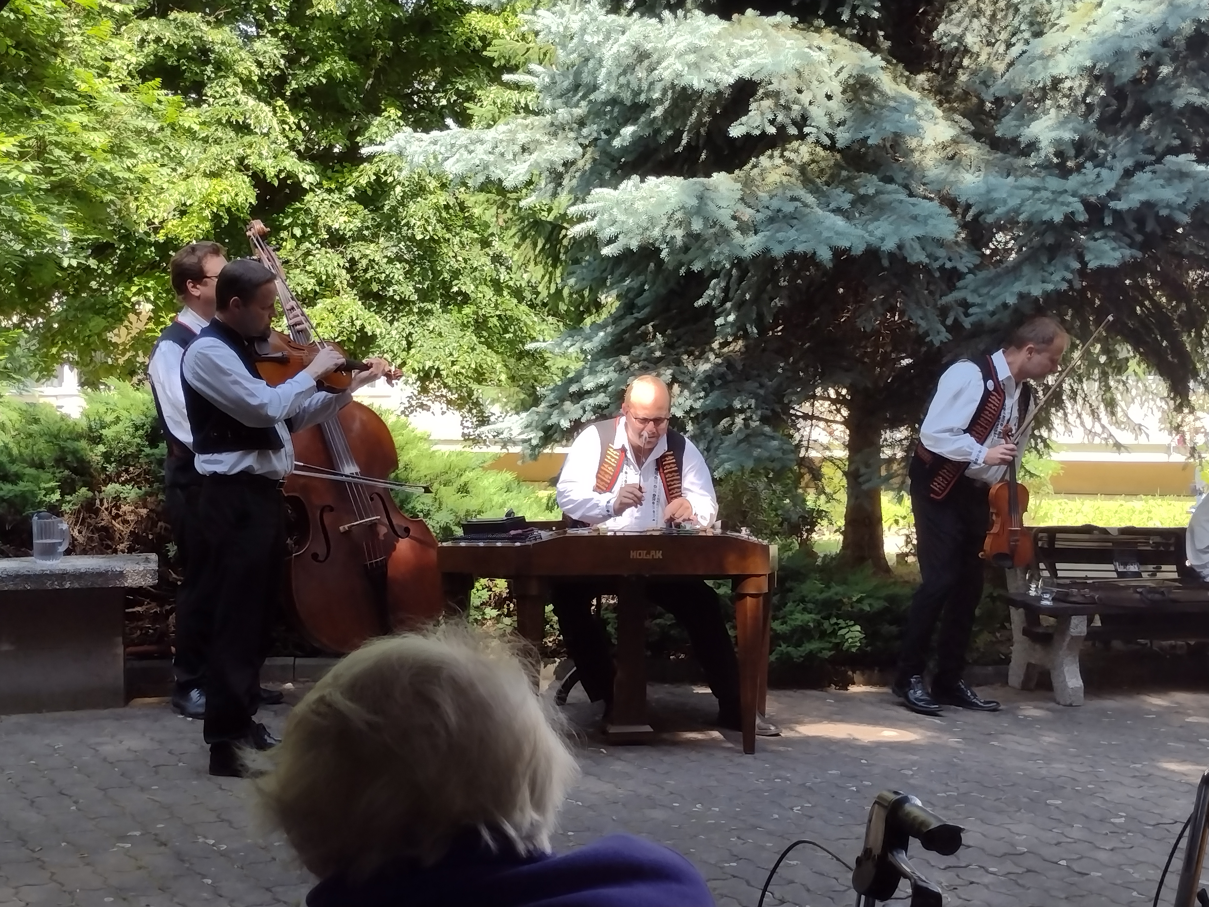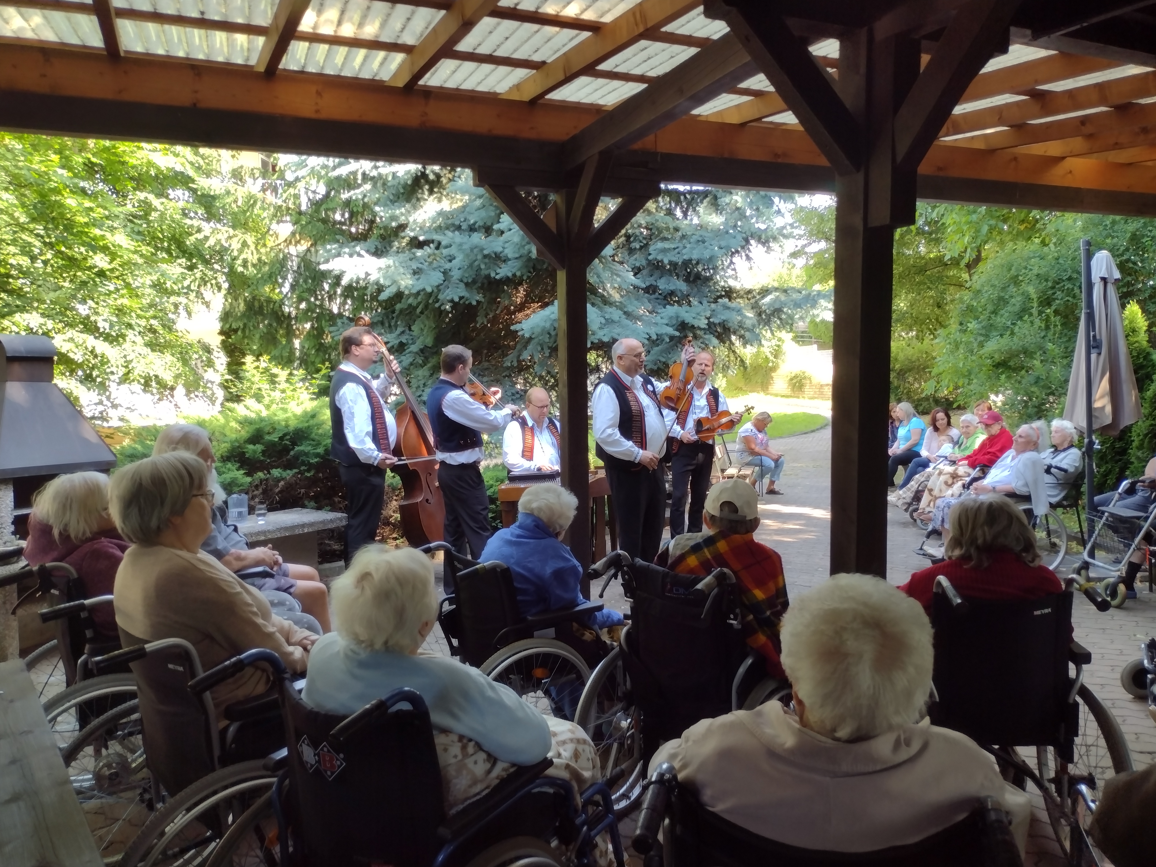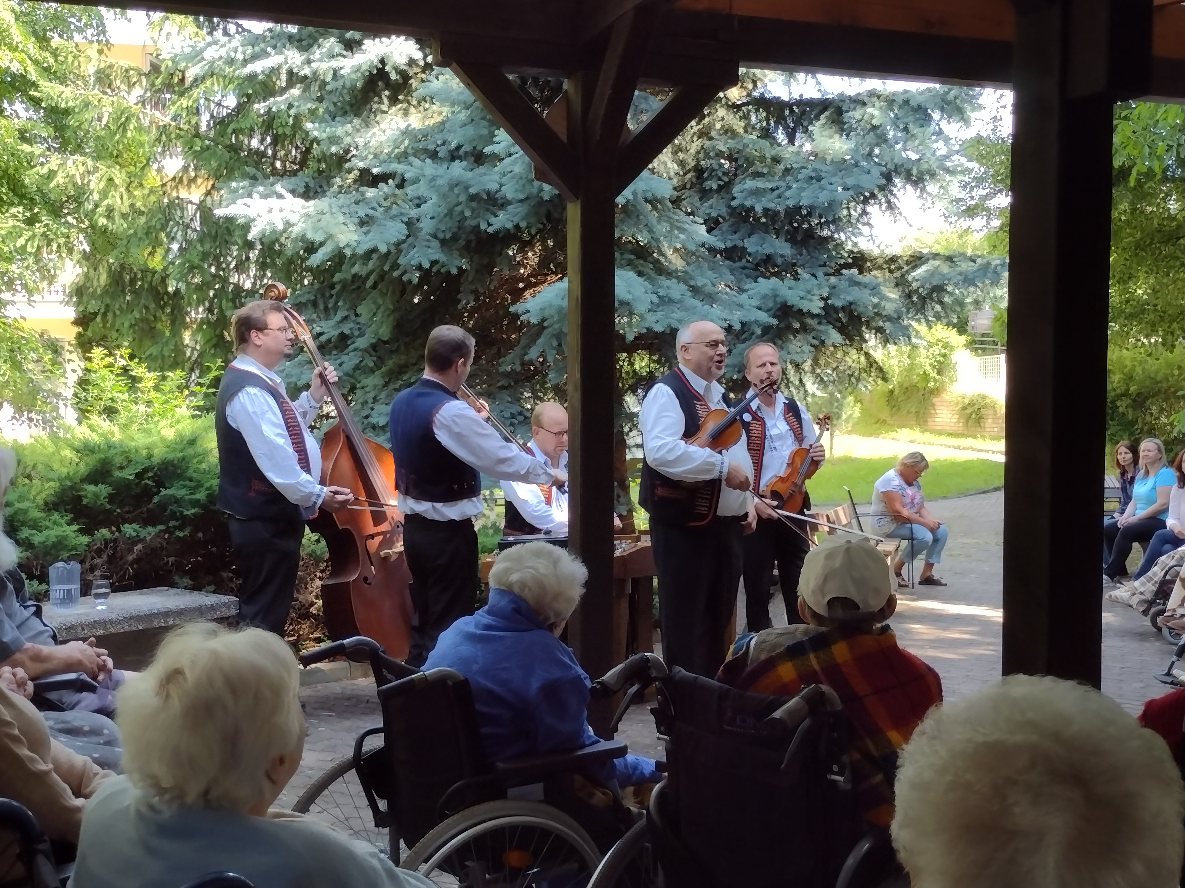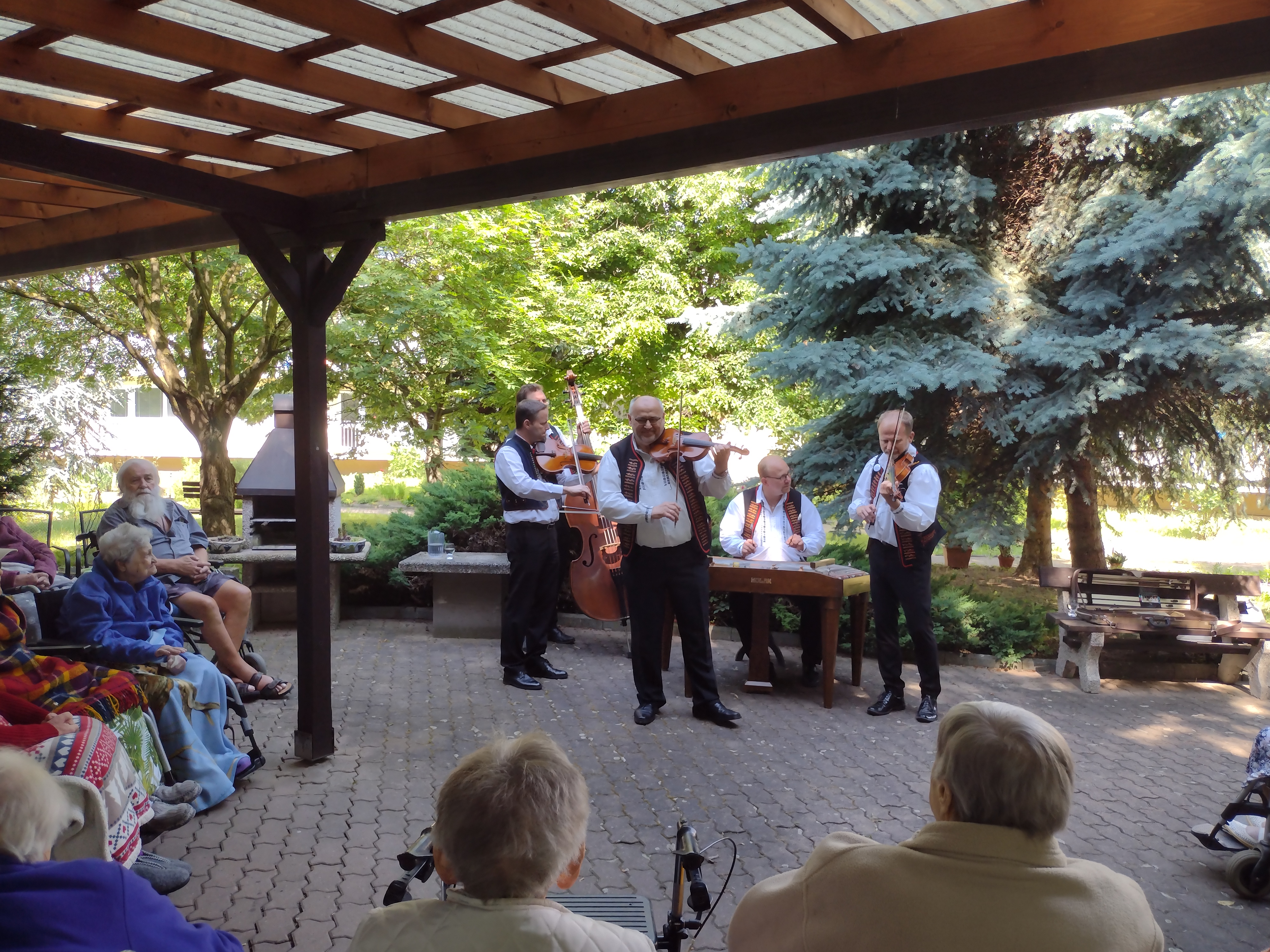 V úterý 13. 6. 2023 v dopoledních hodinách nám přišla zahrát "Cimbálová muzika Aleše Smutného". Hudební vystoupení se uskutečnilo na zahradě Domova.
