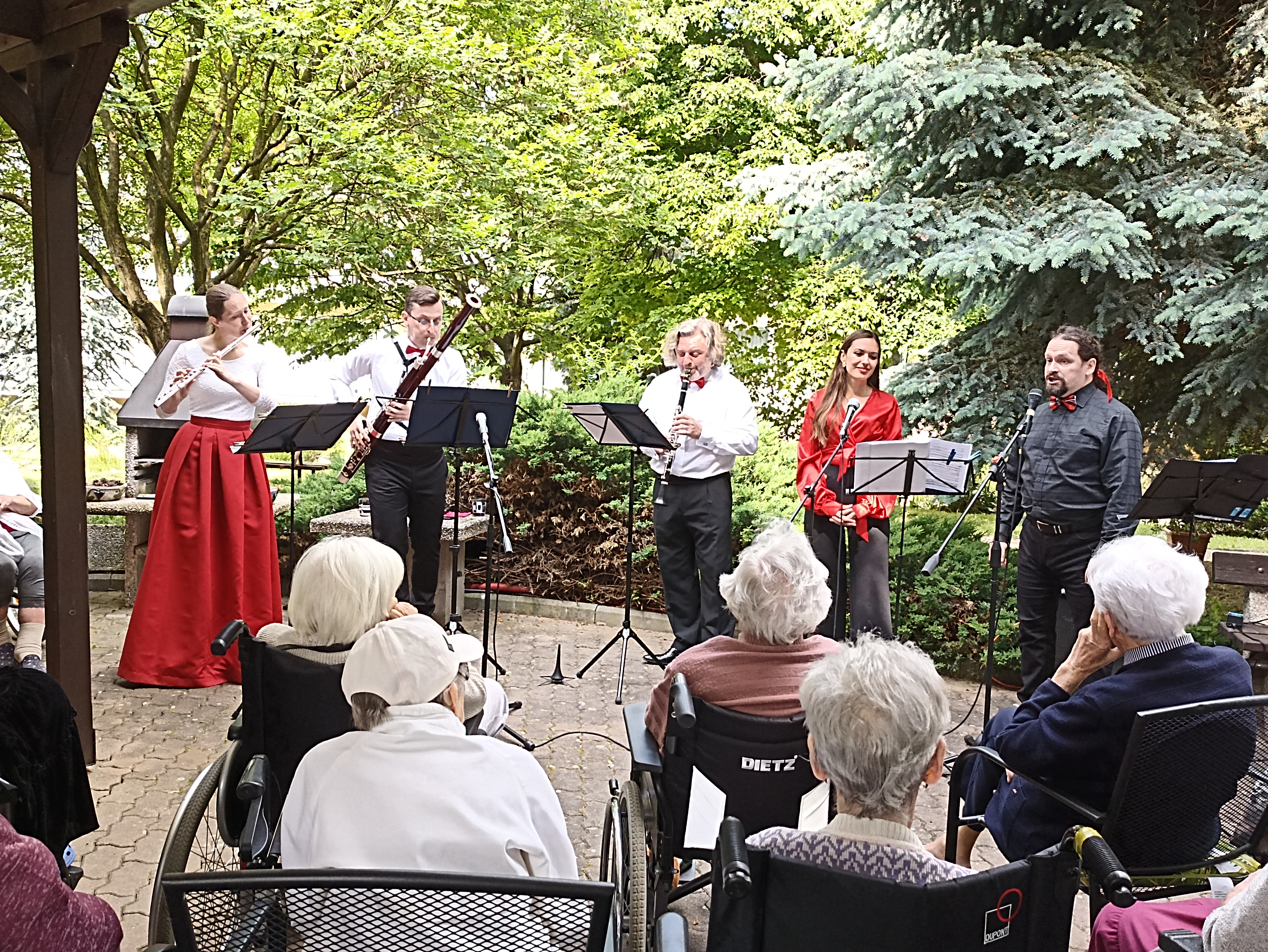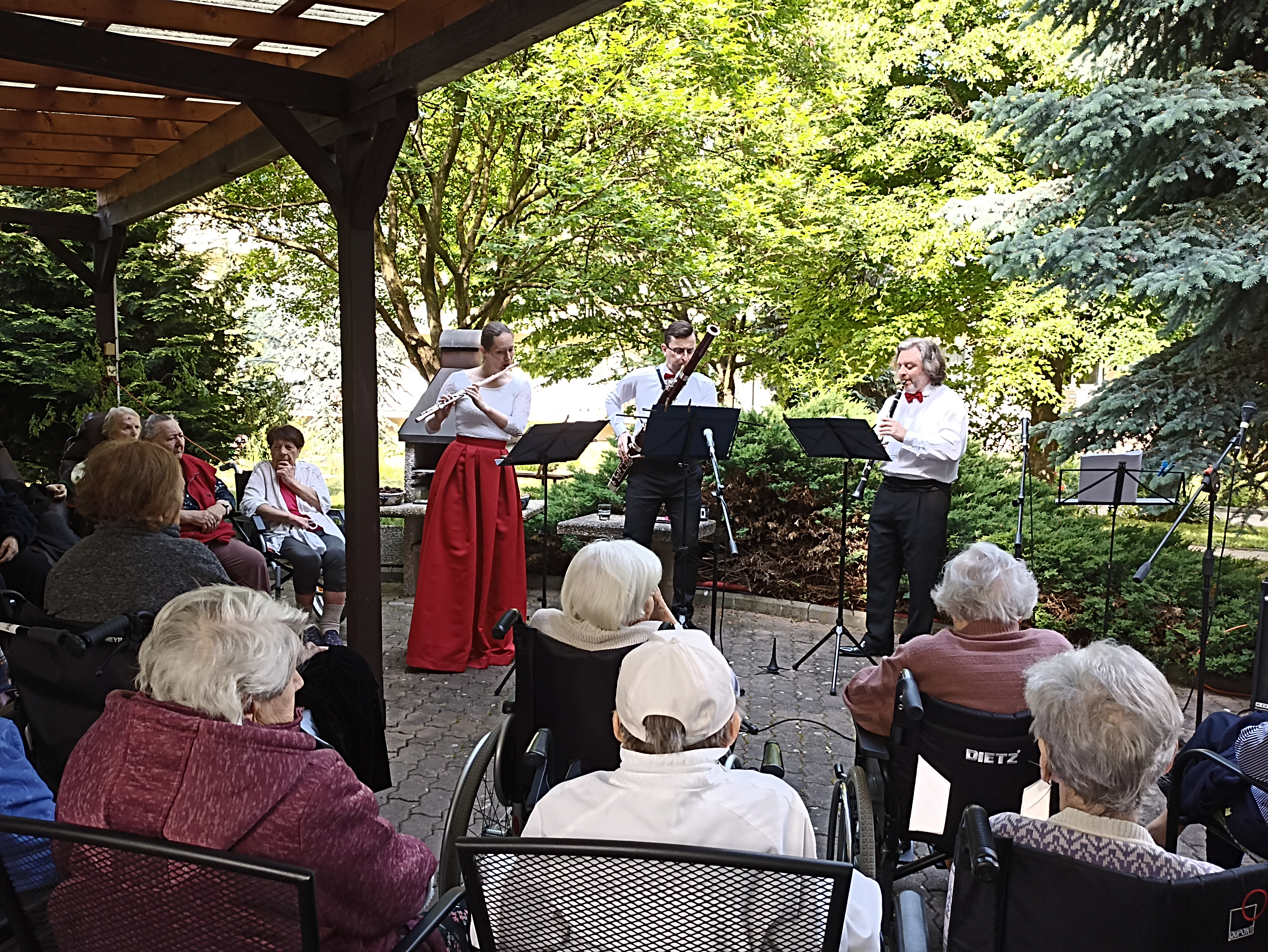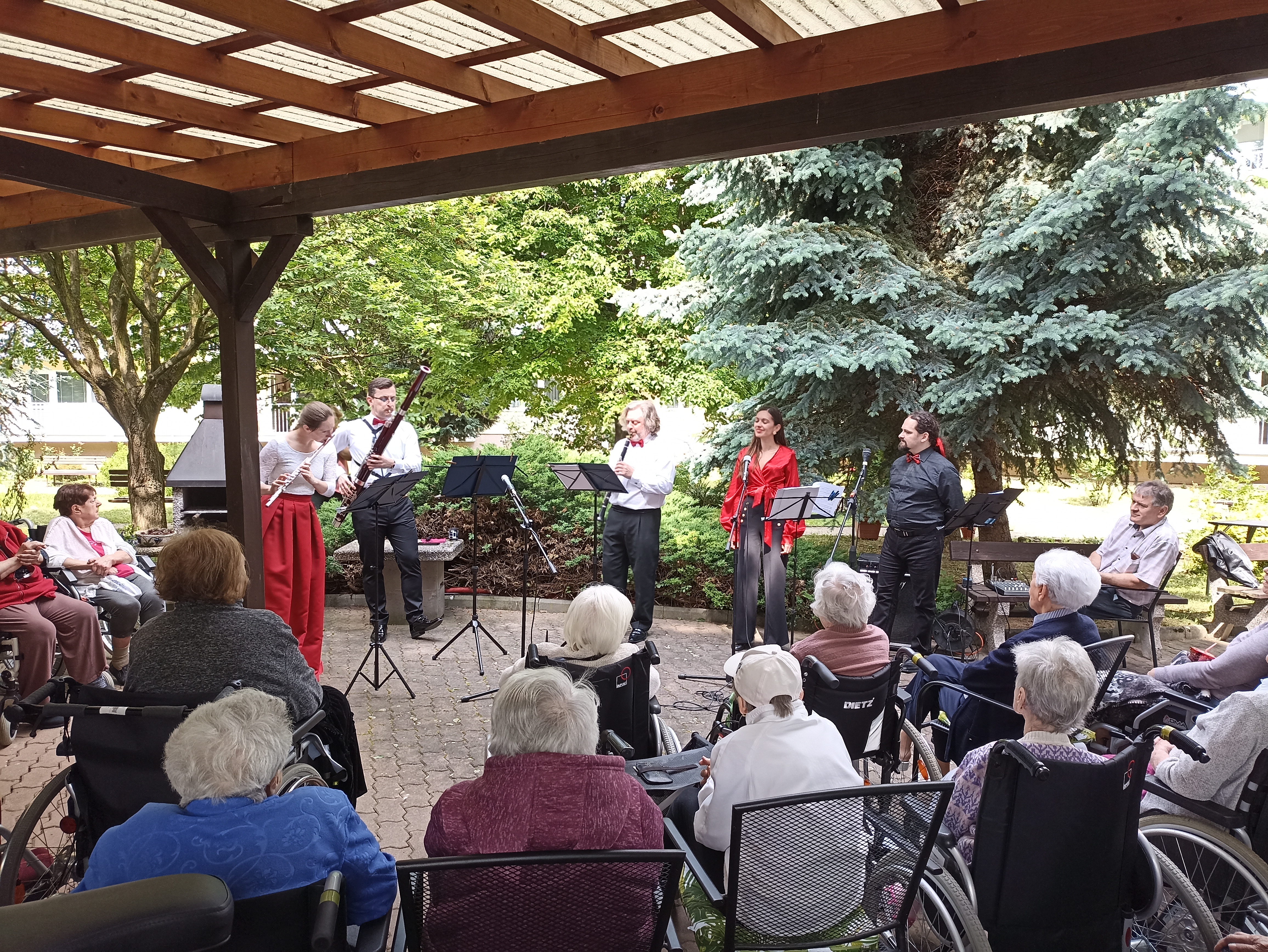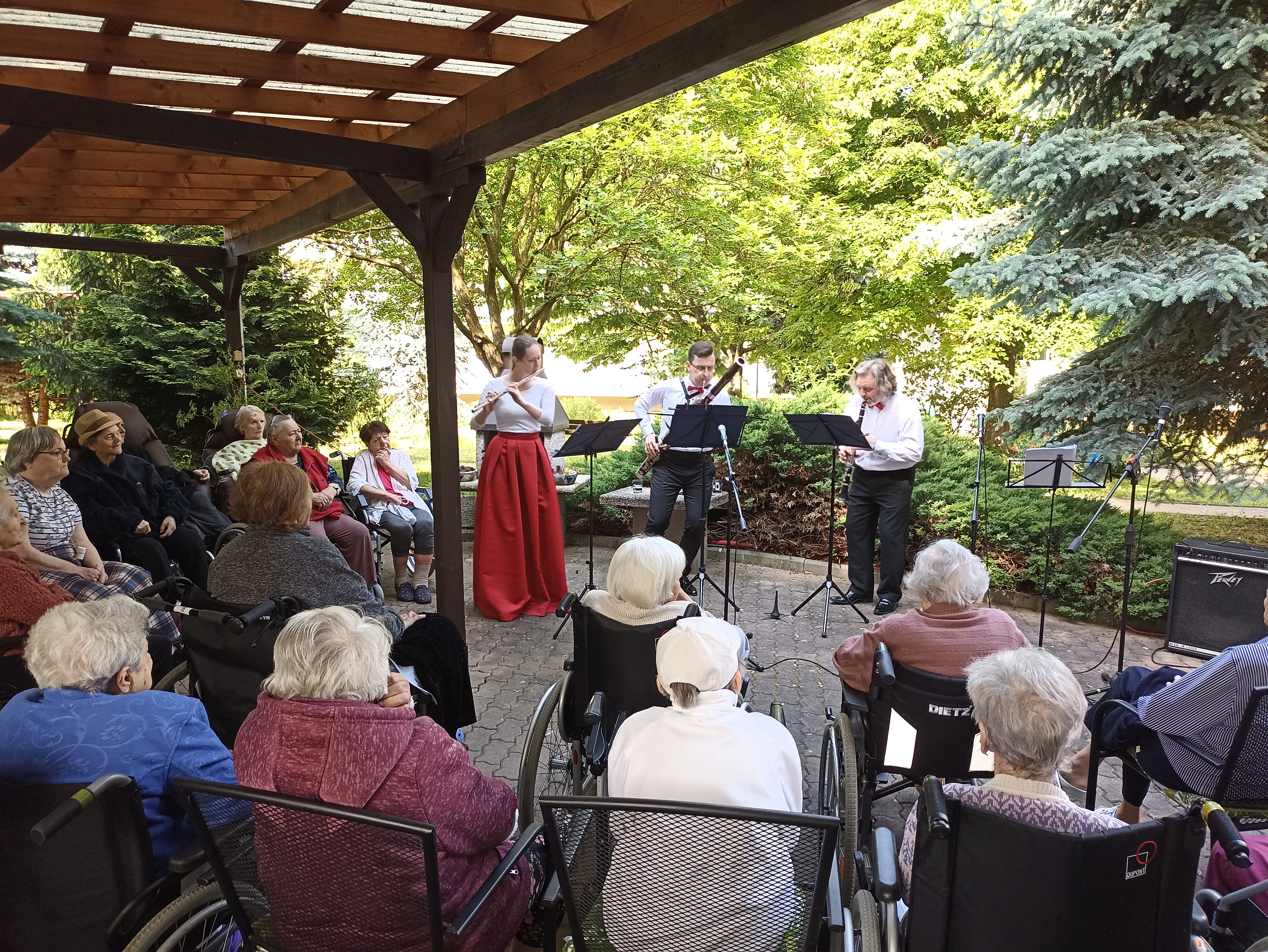 V úterý 30. 5. 2023 jsme společně s panem Vítem Gregorem uspořádali pro naše klienty Májový koncert dechového tria EL GONZALES a jeho hostů. Akce proběhla na zahradě Domova.