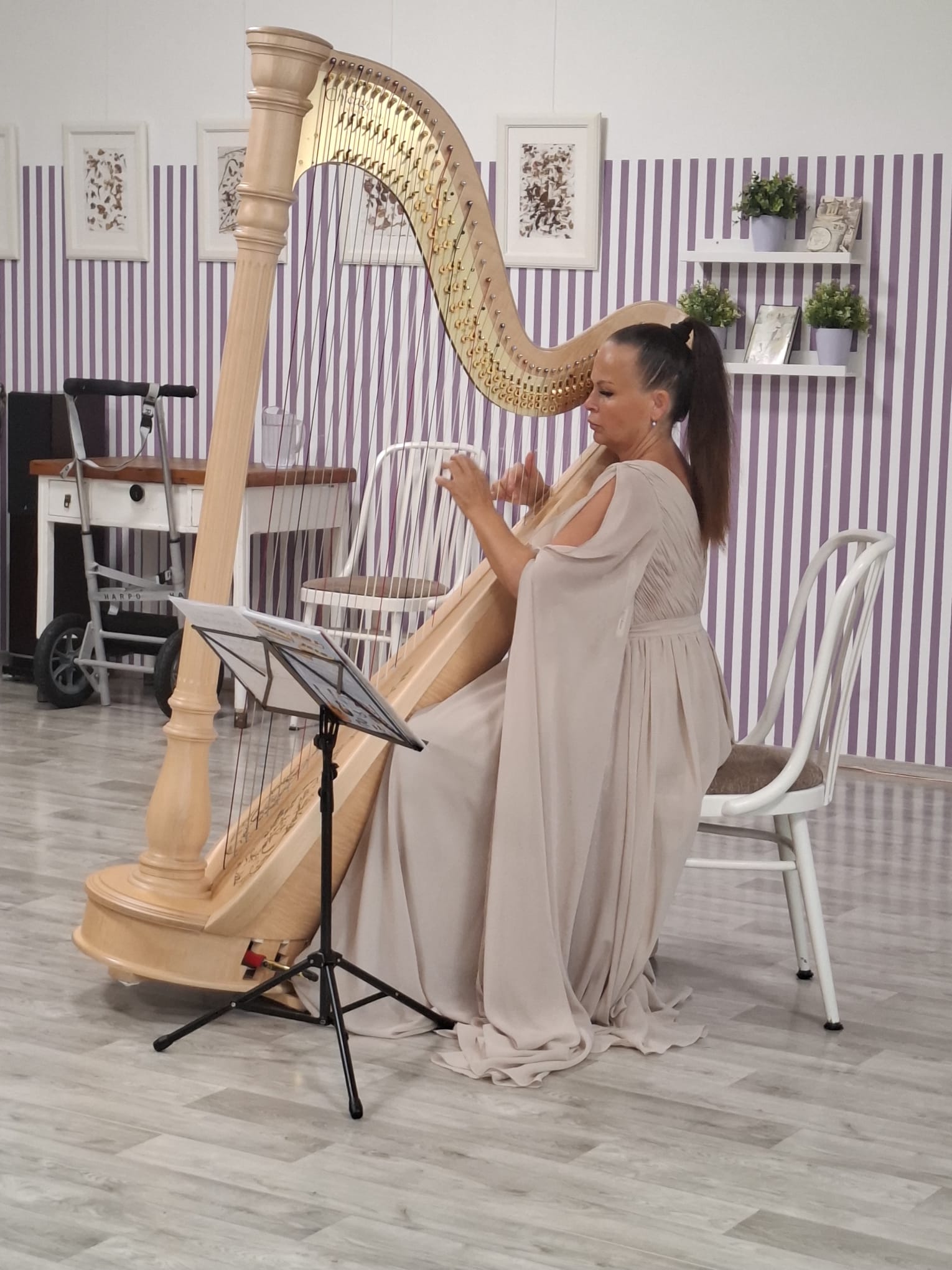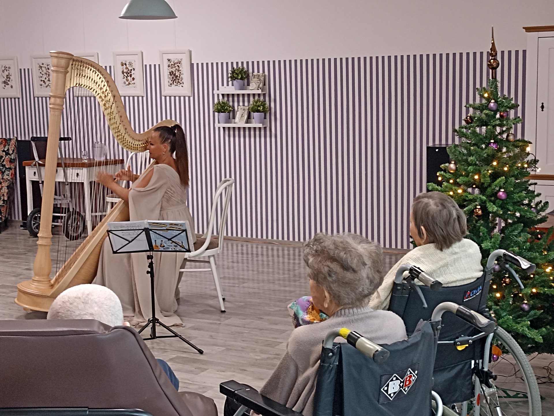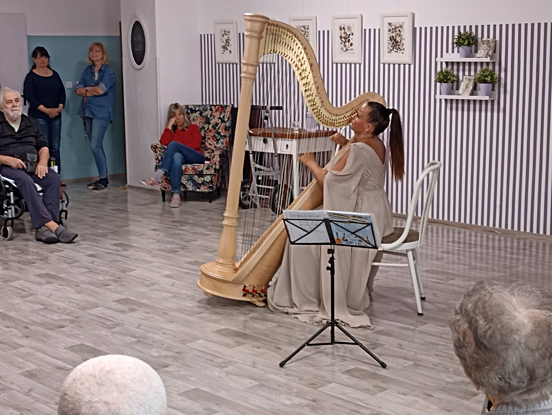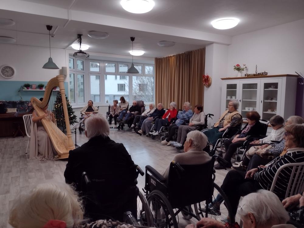 Také letos naše klienty v čase Adventu přišla potěšit harfovým koncertem paní Katarína Ševčíková. V rámci vystoupení zazněla hudba různých hudebních žánrů a na závěr také vánoční koledy.