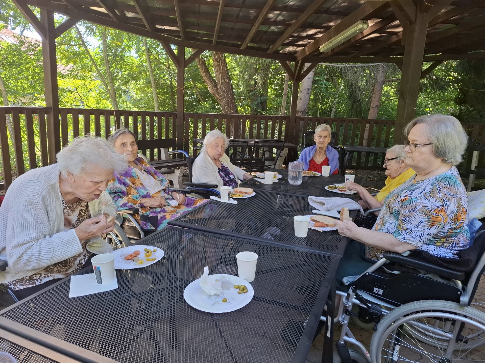 Ve dnech 12., 13. a 14. srpna 2025 jsme v dopoledních hodinách s klienty grilovali klobásky pod pergolou na zahradě Domova. Grilování probíhalo po tři dny, vždy pro menší skupinku klientů. Letní atmosféru nám dokresloval poslech Melody Makers Ondřeje Havelky.