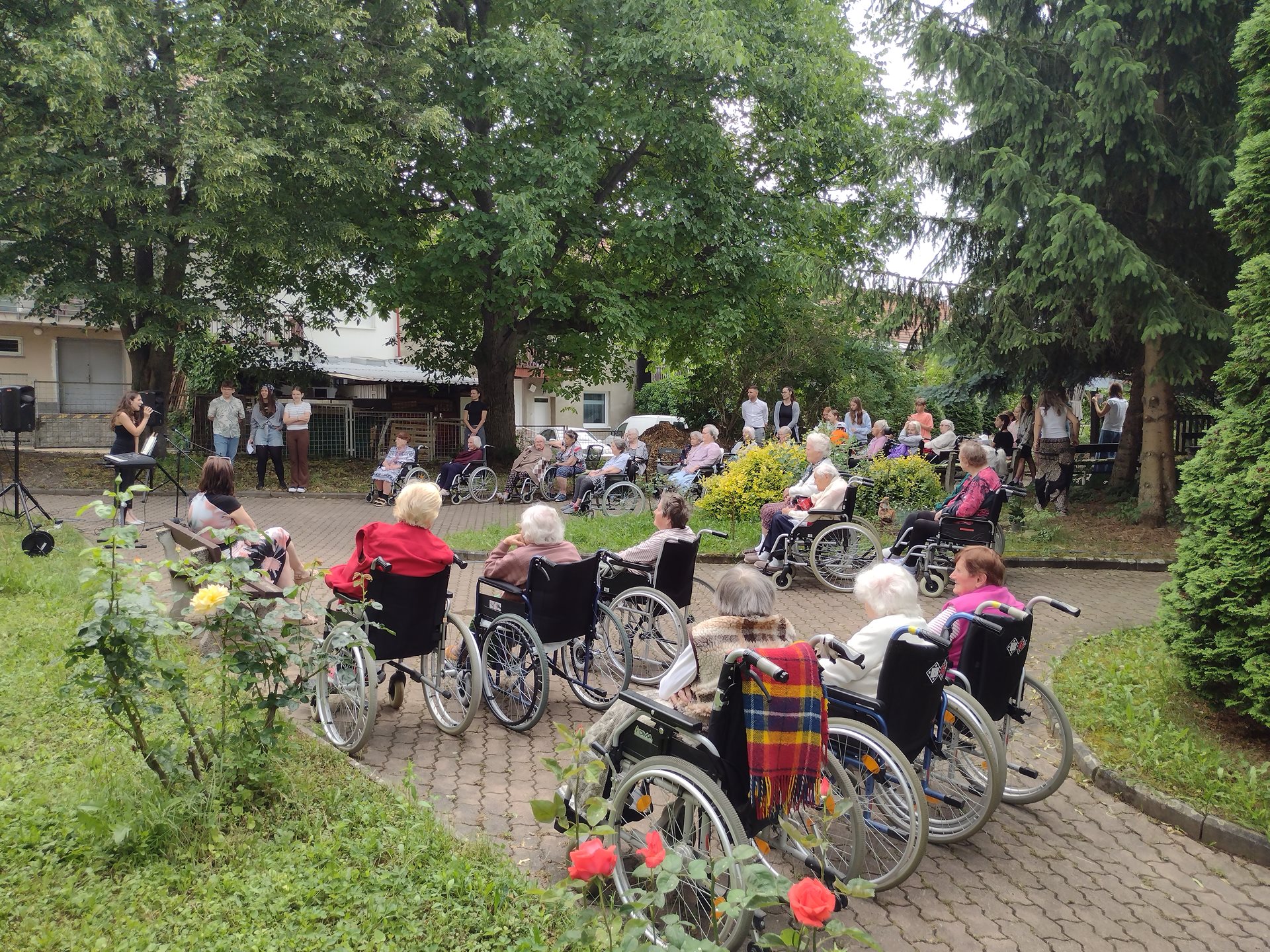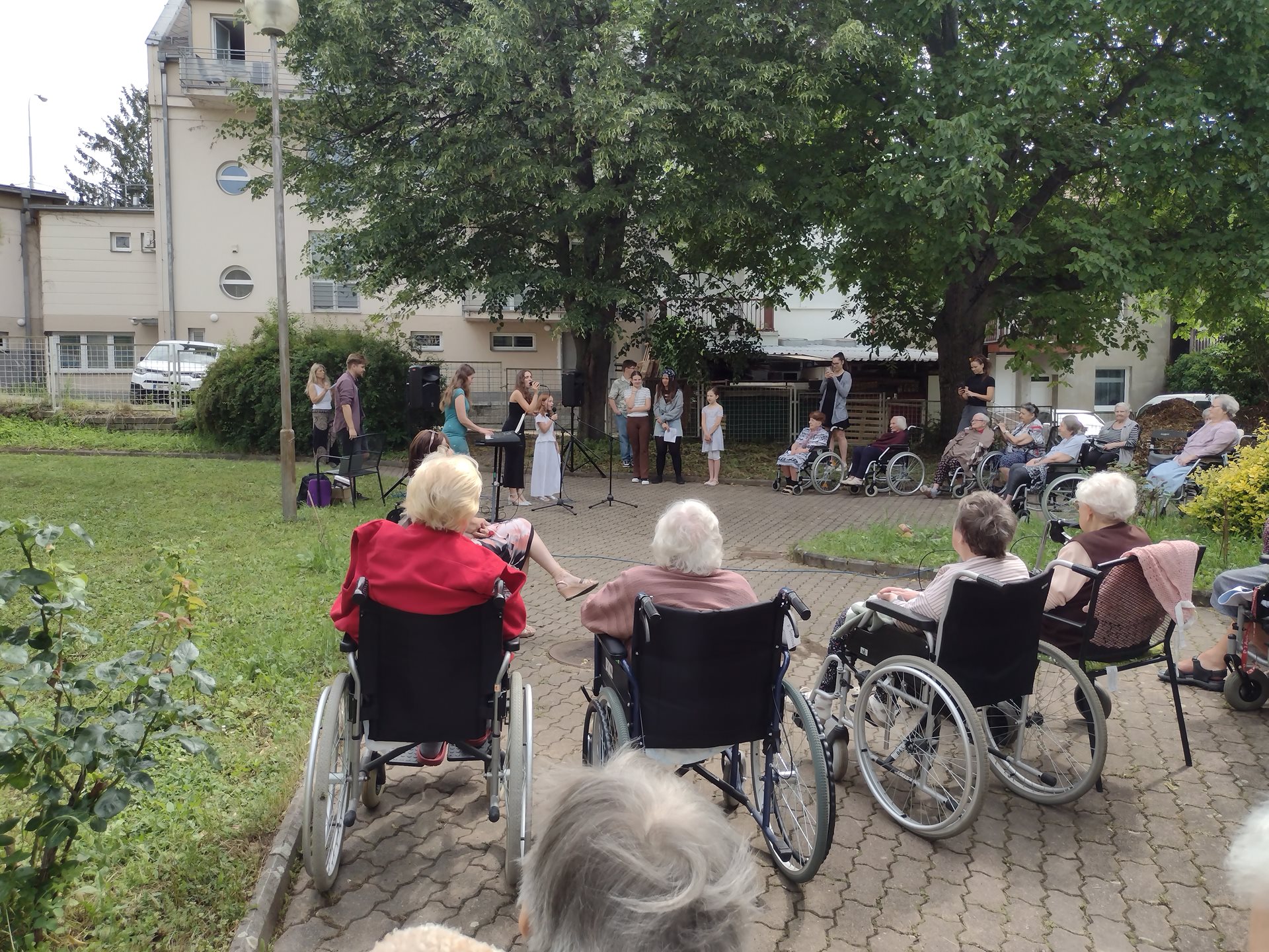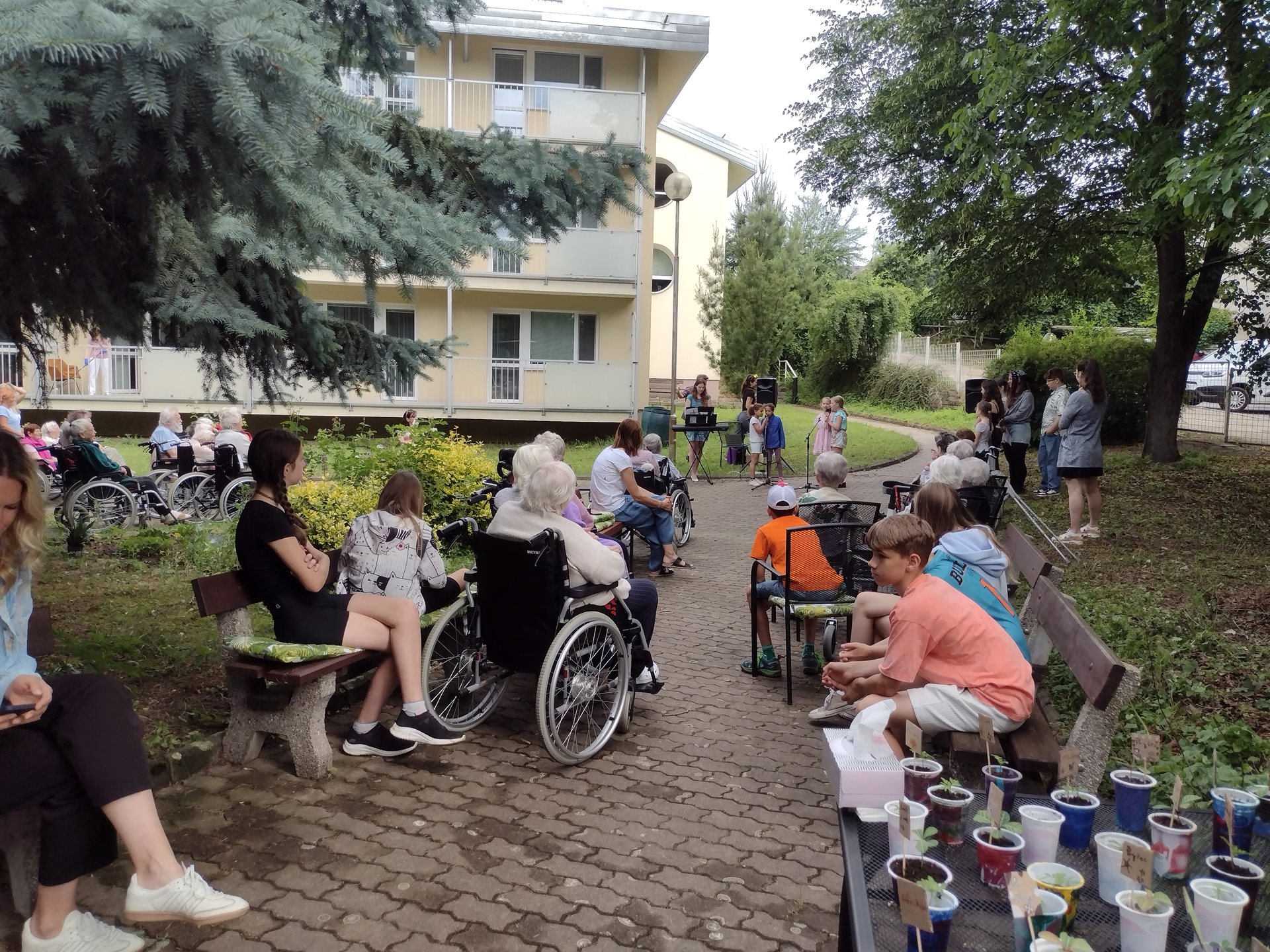 V pátek 6. června 2025 dopoledne nás navštívili žáci ze ZŠ Horáckého náměstí a ZŠ Novoměstská Brno. Pro naše klienty si připravili hudební program a výstavu výtvarných prací. Počasí nám přálo a proto mohla akce proběhnout na zahradě Domova. Součástí celého programu bylo předání finančního daru pro naše klienty. Finanční prostředky byly vybrány studenty v rámci "Dobročinného běhu", který se uskutečnil o den dříve.