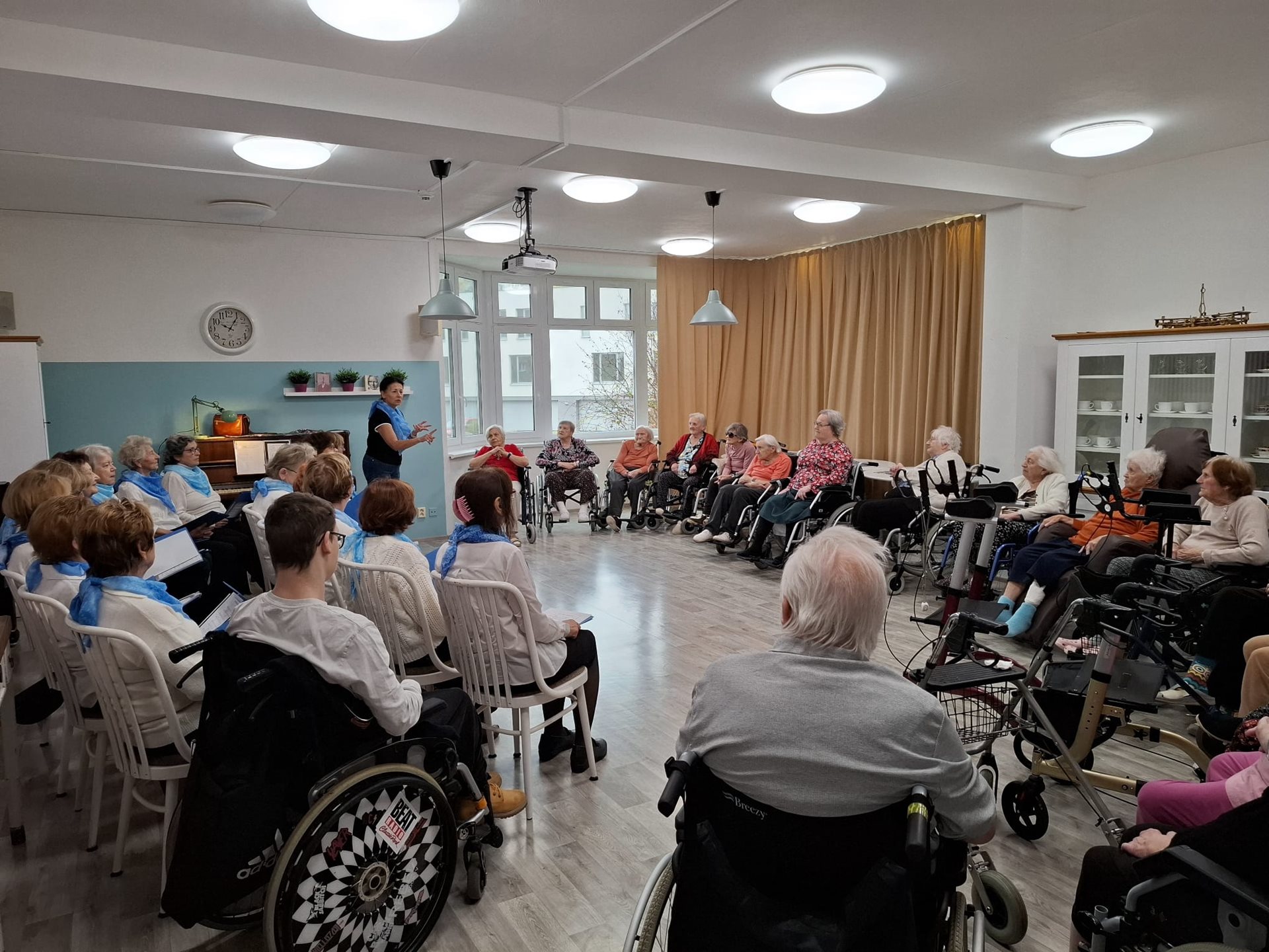 Dne 11. listopadu do našeho domova zavítal pěvecký soubor "Modré šátečky", který sestával výhradně ze seniorek - pod vedením paní Jankovské. Vystoupení uspořádané seniorkami pro naše seniory se setkalo s velkým ohlasem.