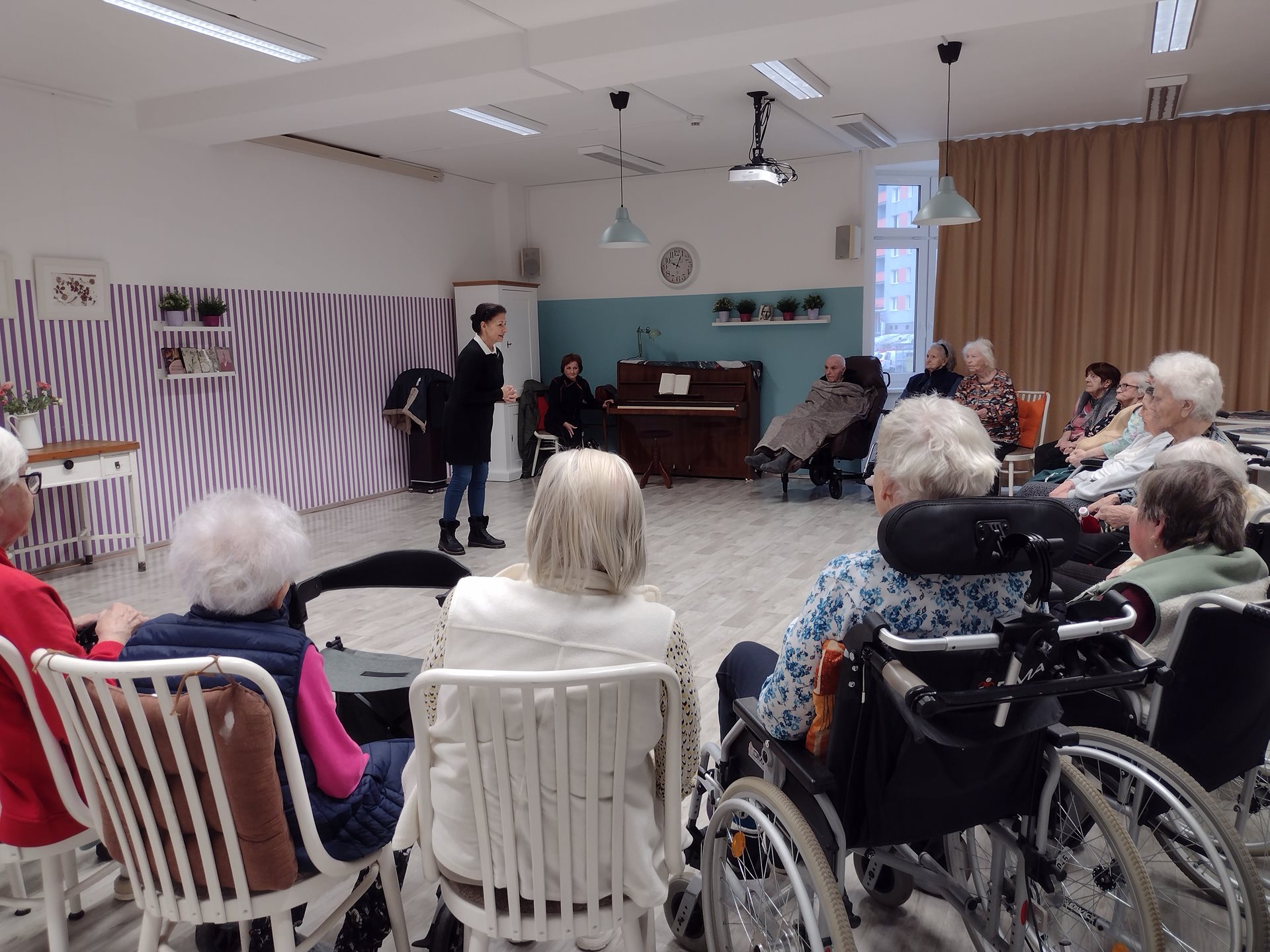 Dne 23. 1. 2025 jsme zahájili spolupráci s paní Jankovskou, sbormistryní pěveckého sboru Modré šátečky. Paní Jankovská bude za našimi klienty po celý rok pravidelně docházet a společně zpívat za doprovodu klavíru.